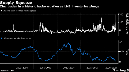 “我们注意到锌市场的库存提取,正在予以密切关注,”LME发言人Miriam Heywood通过电邮表示。“我们已对LME金属实施了一系列额外控制措施,来应对低库存的环境--包括实施现货升水限制,以及延迟交付机制--其目的是确保市场持续有序运行。”