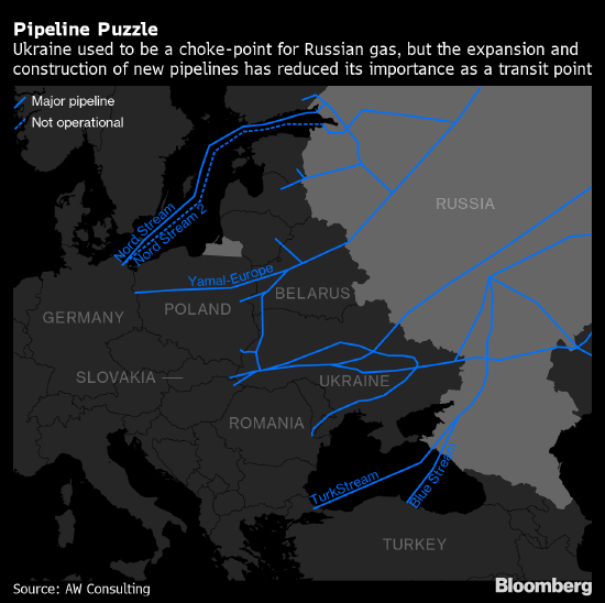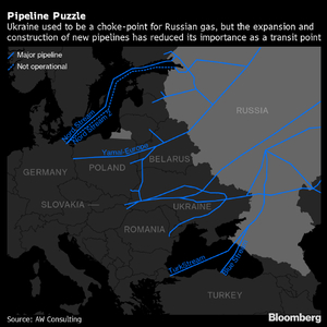 大约三分之一的俄罗斯天然气从乌克兰过境至欧洲。由于俄乌在乌东地区激战,乌克兰的一处天然气过境点被关停,自5月11日以来,过境该国的天然气供应量已经有所减少。当乌克兰和俄罗斯于2019年12月达成为期五年的天然气过境协议时,乌克兰总统泽连斯基表示该国将从中获得至少70亿美元过境费。