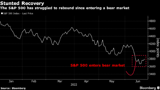 美国股市上周陷入熊市后,一直难以明显反弹,标普500指数指数仍在迈向1970年以来最糟糕的上半年表现。美联储主席鲍威尔本周承认,经济软着陆“非常具有挑战性”。