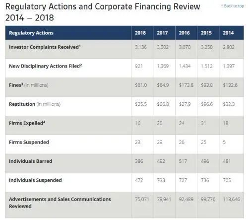 FINRA作为华尔街的独立监管机构,FINRA成员绝大部分出身律师、经纪商或者交易员,被称为SEC的幕后“副手”。2007年,FINRA由国家证券交易商协会和纽交所的监管团队合并而来,目前监管包括4400家经纪机构及其162903个分支机构,还有大约630020个注册的证券经纪代表。