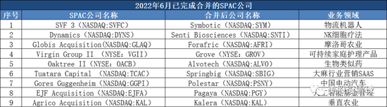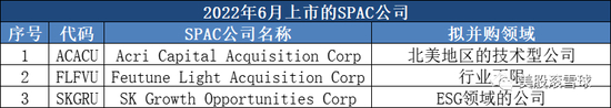 2022年6月SPAC公司上市及合并情况