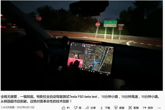 油管上同样有不少人测试了特斯拉FSD.beta的表现。比如,6月12号,一位博主就分享了一段从韩国超市开回家,全程无接管,一镜到底的30分钟视频。