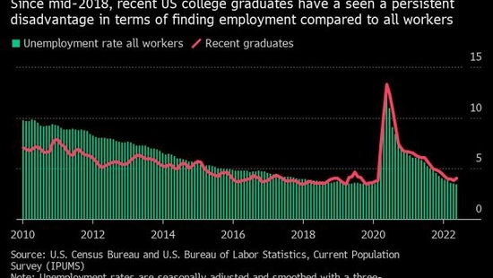 美国的职位空缺接近历史新高,失业率接近一代人的低点。但有一类人面临着比一般人更严峻的劳动力市场:年轻的大学毕业生。