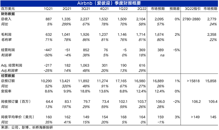 1. 价强而量弱,衰退影响初现?:本季度,公司房屋出租预订总金额 (GBV) 为169.8亿美元,与市场预期基本一致,相较2019年同期增速仍高达73%,增长依旧强劲。
