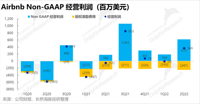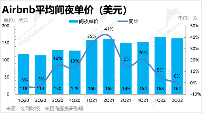 同时,本季平均间夜单价为165美元,同比持平。然而在出行全面恢复的预期下,租房结构将由北美向全球转移、由度假出行向商务出行转移,公司在上季度曾指引ADR会同有所回落,市场预期本季的ADR也仅为159美元。因此,ADR的表现实际强于预期。
