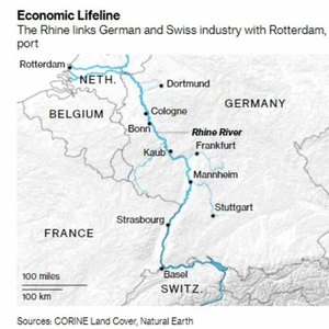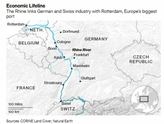 莱茵河联通德国和瑞士与欧洲最大海港——荷兰鹿特丹,堪称欧洲经济的“生命线”,新近预测显示,德国工业巨头货运依赖的这一生命线正处在可能断航的超低水位。