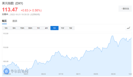 周五,美国10年期国债收益率再次飙升,日内一度上行近6个基点,达到4.282%,推动美元指数一度升破113.5。