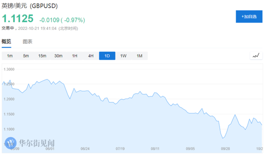 英镑兑美元跌幅扩大至1%,现报1.1125,该货币昨日的涨幅已被完全逆转,投资者认为特拉斯辞去首相一职并不一定意味着英国政治不确定性将被消除。