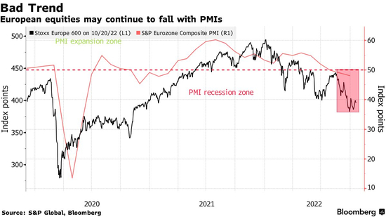 华尔街投行在过去一个月下调了欧股目标价,彭博调查中经济学家的预期中值为406点,表明斯托克欧洲600指数今年将下跌17%,是自2008年全球金融危机以来的最差表现。