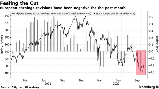 过去一个月投行对欧洲企业的盈利预期转向负面