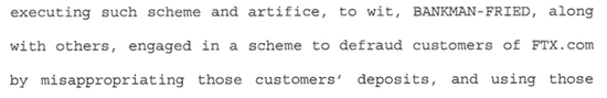 司法部表示,SBF等人设计了“欺诈计划和方案,通过虚假和欺诈性的伪装、陈述和承诺来获取金钱和财产”,并对涉案金钱财产进行了跨州和跨国电汇。