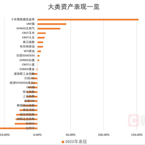 虽然加息推动美债收益率疯狂攀升,涨幅列榜首,但对于美债的持有者本身而言是数十年一遇的巨亏。后续涨幅排名居前的,伦镍、天然气、农产品等也都受到交易所的流动性事件和俄乌冲突影响。所以今年可谓是大类资产在外部事件冲击下风雨飘摇的一年。