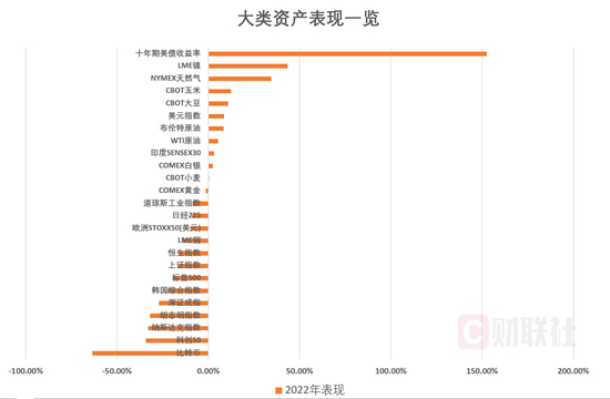 随着美联储上周将2022年的加息步伐锁定在425个基点之时,各个大类资产的全年表现也基本盖棺定论。