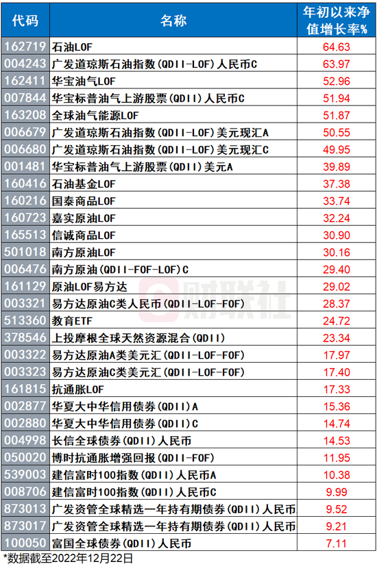 但从收益率的角度来看,虽然投向港股的基金规模和热度颇高,但与大宗商品相关的基金仍轻松“霸榜”今年的收益率排名。