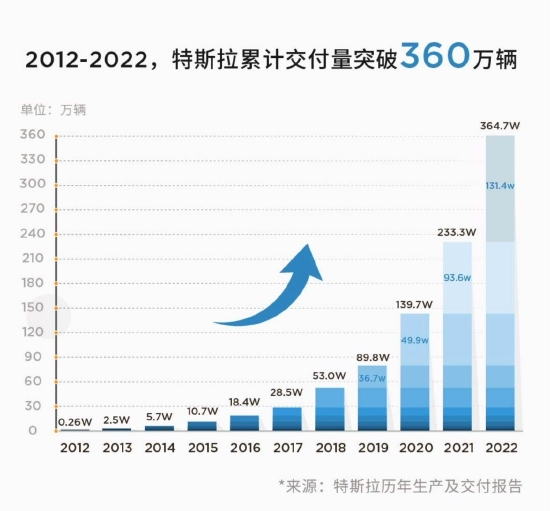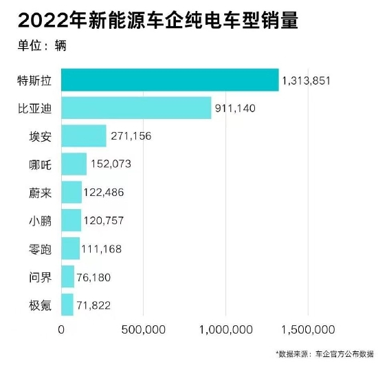 北京时间1月3日,特斯拉发布了2022年全球生产及交付报告。特斯拉以131万的电动车交付量,超越第二名比亚迪91万辆纯电销量,稳坐行业第一。业内普遍认为,这份报告不仅体现了特斯拉扎扎实实的销量成绩,更是预示了汽车行业2023年乃至未来的走向——“燃油车时代终结已成定局”。
