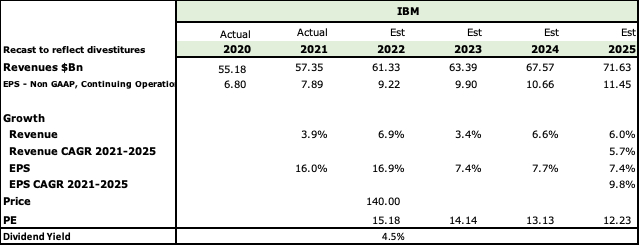 我预计IBM的收入在未来四年将以每年6%的速度增长,因为他们将继续在混合云领域获得吸引力,并扩大他们的足迹。我还相信,他们将继续提高营业利润率,因为固定的销售管理费用成本将分摊到更高的收入中,这应该会导致利润更快地增长10%。此外,这些都是保守的估计——由于2022年美元走强,IBM损失了约7%的营收。IBM大约60%的收入来自美国以外,这将成为2023年以后的顺风。