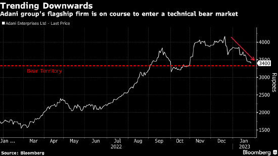 受沽空报告持续发酵影响,截至1月27日(周五)收盘,阿达尼集团在孟买交易所跌9.89%报338.95卢比/股。