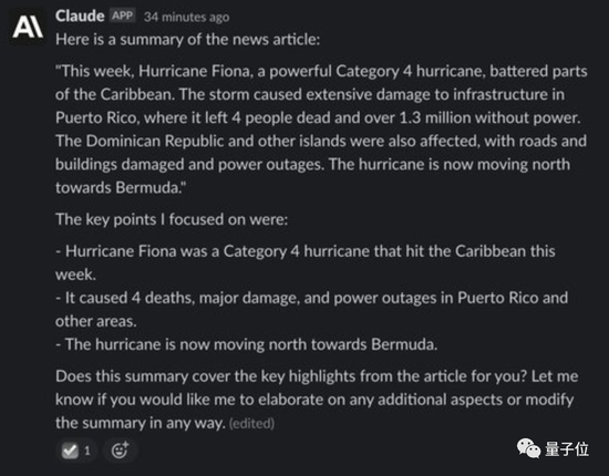 关于做选择题、讲笑话的部分,这里不作赘述。展示给大家的最后一个例子,是让Claude和ChatGPT用一个段落,对一篇新闻进行全文梗概。