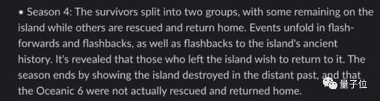别的细节错误就不说了,ChatGPT对第五季的梗概里,虚构了完全不存在的飞机坠毁情节;第六季的情节更是统统凭空捏造: