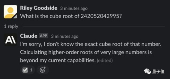 如果题再难一点,比如问它俩一个12位数的立方根是多少时,ChatGPT还在傻傻计算,Claude已经坦诚相待:
