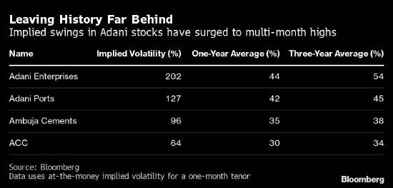 做空Adani Group的股票要比做空印度一些同类公司贵得多。数据显示,1月16日交易员借入Adani Enterprises股票的花费为每股8卢比。相比之下,1月借入印度市值最大的股票Reliance Industries Ltd.的平均花费为每股0.22卢比。