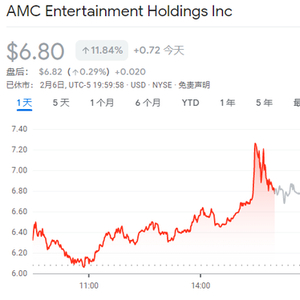 在AMC院线周一宣布了新的定价计划后,这家全美最大连锁院线的股价当天收于6.80美元,上涨了近12%。