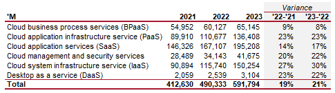Gartner认为,最受欢迎的领域将是平台即服务(PaaS)。这是甲骨文擅长的领域,可能意味着比预期更大的负面影响。这源于我们在应对最初通胀压力时观察到的工资通胀问题。由于员工要求加薪,大多数行业的企业都很难招到人。
