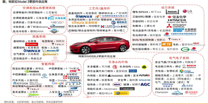 于特指出伴随特斯拉新技术的应用、新工厂产能爬坡、自动驾驶技术升级以及新车型后续推出,看好特斯拉产业链的高增长机遇。建议关注受益于特斯拉产销扩大及国产化率提升的产业链核心标的:拓普集团、旭升股份、沪光股份、新泉股份、银轮股份、岱美股份、常熟汽饰、上声电子、三花智控、宁德时代等。