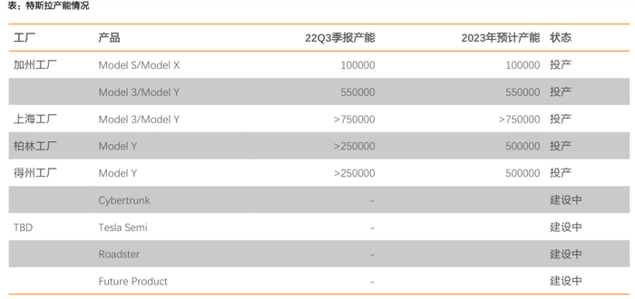 特斯拉的产能布局覆盖北美、亚洲和欧洲,天风证券于特1月10日研报中预计,到2023年,特斯拉的年产能将有望突破240万台。