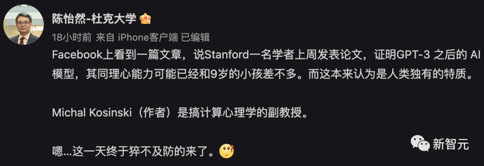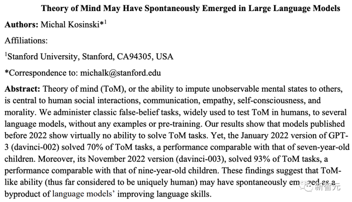2023 年 2 月上旬,斯坦福学者证实 ChatGPT 有 9 岁小孩的心智。