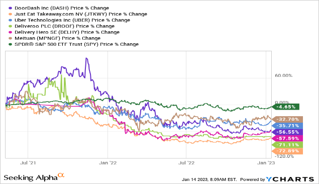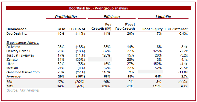 在观察DoorDash的同行时,我们观察到了行业的普遍特征。所有企业都缺乏盈利能力,但都在快速增长。