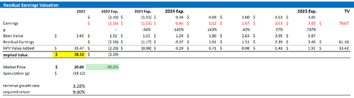 与我之前的基本情况评估一致,我继续锚定9%的股权成本和3.28%的终端增长率(比预计的全球名义GDP增长率高出大约一个百分点)。