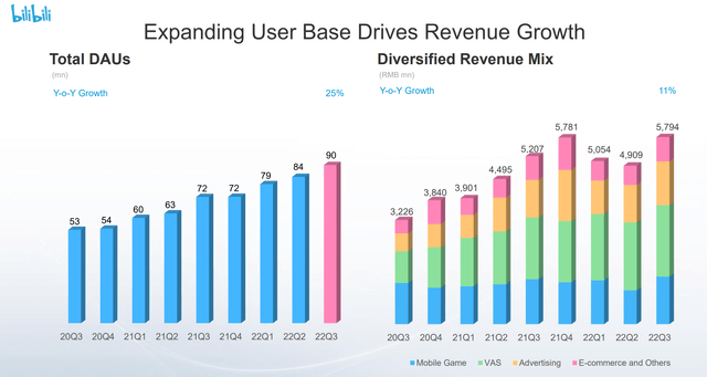 值得注意的是,与2021年第三季度相比,哔哩哔哩的所有盈利支柱都实现了扩张(强调添加):