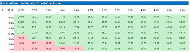 考虑到如下所示的EPS升级,我现在计算出合理的隐含股价为38.12美元,而之前为33.07美元。
