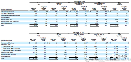 由于SVB的资产购买集中在2020-2021年低息期间,因此AFS和HTM资产的平均收益率非常低。从10-K看,其AFS的平均收益率只有1.49%,HTM的平均收益率只有1.91%(图6)。