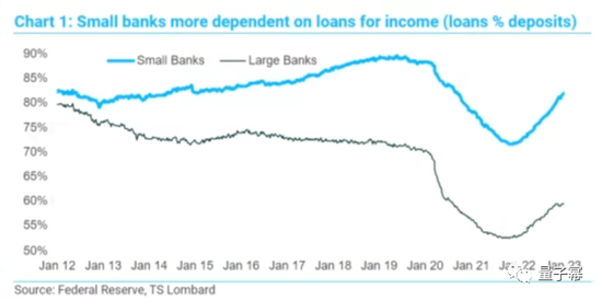 Blitz表示,由于小型银行的收入更多地依赖贷款,它们“借出和借入短期贷款为自己融资方面更为积极”,因此面临的不确定性更大。而与小型银行相比,大型银行自金融危机以来面临着更为严格的监管,因此可以避免遭受严重冲击。