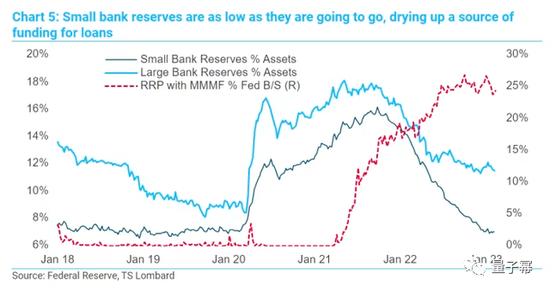 根据Blitz的说法,随着美联储持续收缩资产负债表,银行目前的准备金基本上处于最低水平,尤其是小银行。