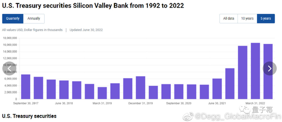 面对负债端资金的大量流入,SVB资产端可投资资金也快速上升。2020-2021年美联储还没有开始加息,如果把钱趴在美联储的准备金账户上,年化只有低的可怜的0.1%的利息。SVB的选择是,买大量的美债和MBS。从它的10-Q来看,2020年年中到2021年末,SVB增持了120亿的美债,持有量从40亿增长到了160亿(图2)。