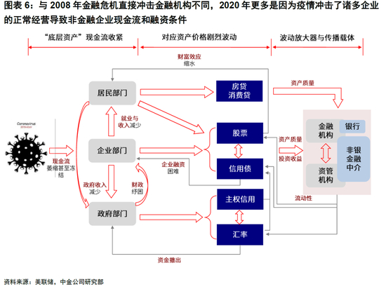 与2008年金融危机直接冲击金融机构不同,2020年更多是因为疫情冲击了诸多企业的正常经营,导致非金融企业现金流紧张和融资条件大幅上升,这一点从非金融企业商业票据在2020年超过2008年水平、而金融机构商业票据却仍低于2008年的差异中就可以看出。因此,此前美联储一直试图给金融各机构和直接通过QE向二级市场(购买国债和MBS)注入流动性,但无法直击问题核心。金融机构即便有流动性,可能也没有动力向深陷困境的非金融企业提供信用和流动性支持,即所谓的“流动性分层”。因此,直到2020年3月23日,美联储决定直接购买投资级信用债ETF,才最终“对症下药”,而市场也才真正企稳。