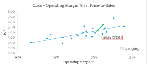 话虽如此,随着2023年收入增长加速,价格上涨渗透到毛利率中,思科处于非常有利的地位,可以进一步提高其运营盈利能力。