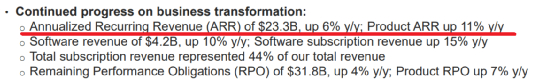 我们有230亿的ARR,我们可以在接下来的12个月里续期。如果回到8、9年前,我们每个季度的订单收入可能都要占到总收入的75%。现在我们44%的收入来自资产负债表和经常性收入