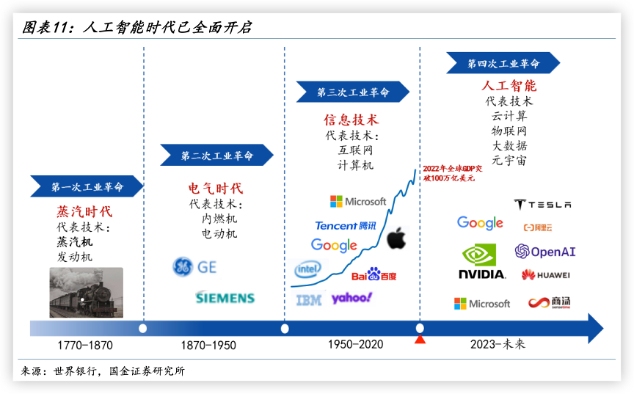 英伟达CEO黄仁勋认为,ChatGPT的出现代表着人工智能产业的iPhone时刻。从更广泛的层面而言,ChatGPT不仅是一款划时代的产品,更标志着以人工智能为主导的第四次工业革命已经开始。