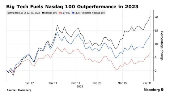 纳斯达克100指数跑赢大盘 大型科技股推动美股第一季度强劲上涨