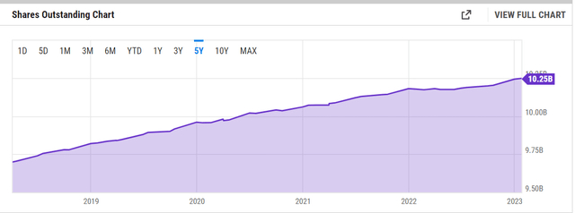 不可能说这种稀释让股东付出了多少代价,但如果没有合适的人才,亚马逊将不会有今天的成就。因此,当投资者也受益时,一切都是公平的。但随着过去几年库存停滞不前,员工在减少的蛋糕中所占比例较小是公平的。值得赞扬的是,在过去五年中,已发行股票仅增长了约 6%。这比普通的硅谷公司要小得多。但亚马逊及其投资者面临的问题是,亚马逊不再是“普通”公司,也没有像过去二十年那样实现 50 倍增长的潜力。