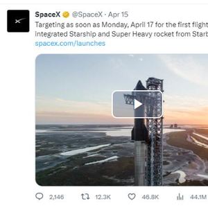 发射地点为SpaceX位于德州Boca Chica的“星际基地”,时间定在当地时间4月17日周一早上7点(北京时间晚上20:00),届时将会全球直播。SpaceX表示,它将有一个时长150分钟的发射窗口,SpaceX将于火箭准备发射前45分钟开始全球直播。
