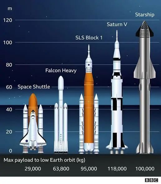 据悉,本次发射的“星舰”是人类历史上最高的火箭系统。“星舰”和超重火箭加在一起,高度达到394英尺(约120米),这比曾经的登月火箭土星5号(也是唯一一艘载人飞越地球轨道的火箭)还要高。星舰总高度120米由底部70米高、配备33台“猛禽”发动机的“超重型推进器”和顶部50米高、可重复利用的飞船船舱组成。