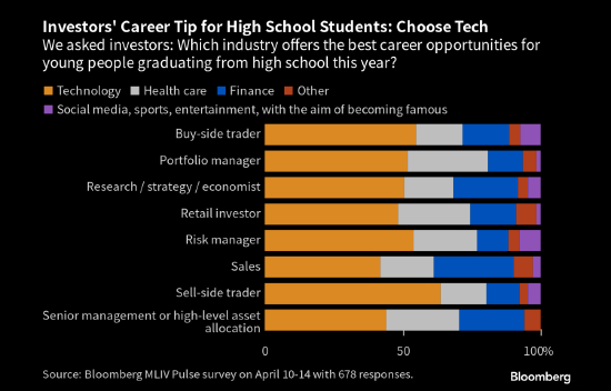 接受最新调查的678人表示,尽管近期Meta Platforms Inc.、亚马逊和Alphabet Inc.纷纷裁员,但对即将成年的学生来说,科技行业仍是最佳的从业选择。在数字平台和人工智能(AI)影响力日益强大的世界里,拥有科技头脑变得愈发重要。