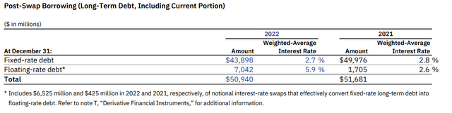 IBM的管理层还决定将相当数量的固定利率债务换成浮动利率债务(见下文)。事后看来,在利率迅速提高的环境下,这似乎不是一个明智的决定。