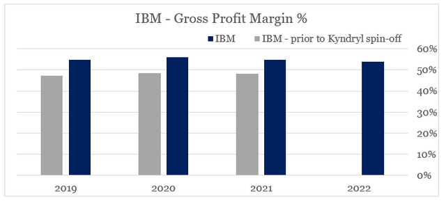 再一次,这是从最近的分拆中大量受益的业务领域。虽然在下图中可能看起来并不多,但IBM的毛利率从交易前的平均48%左右提高到55%左右。