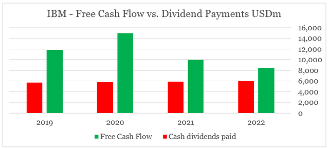 总体而言,债务仍然是IBM的一个问题,而该公司诱人的股息收益率超过5%,似乎随着时间的推移每年都在增加风险。年度股息支付与IBM的自由现金流之间的差距现在处于非常低的水平。